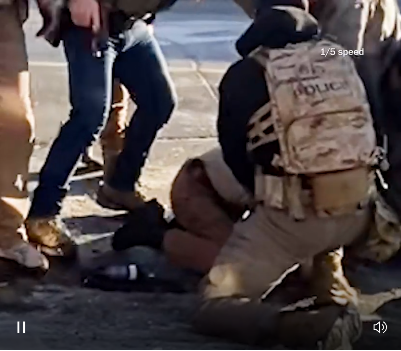 Over roughly the next 10 seconds, Pretti never appears to be fully prone on the ground or to yield fully. At times, his knees are tucked under his body, agents holding him down, their hands on his back.