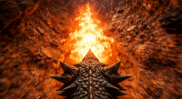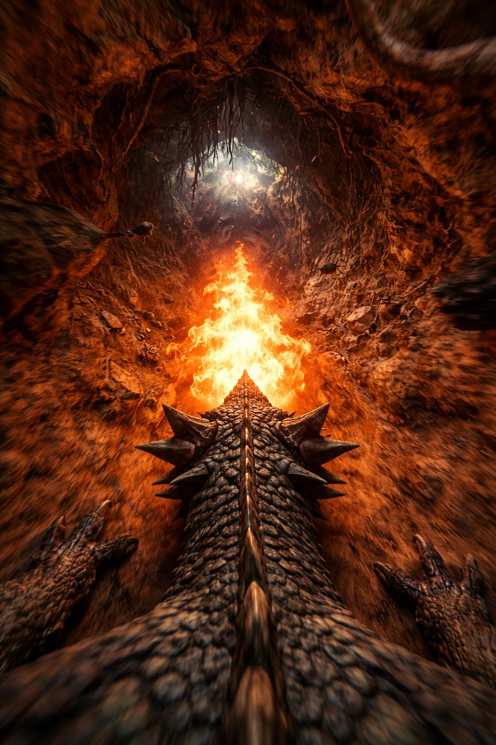 • Dragon drops to ground → rapid crawl → burst sprint into cave